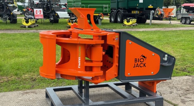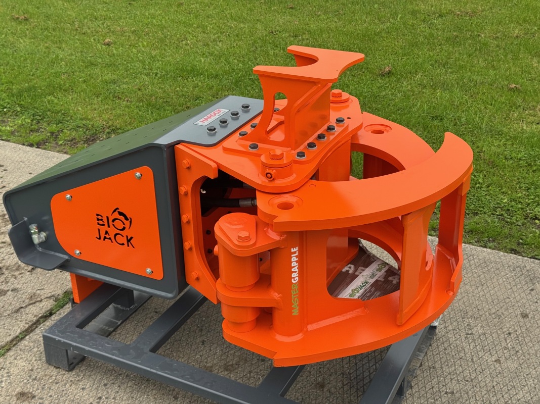 Tās nav tikai koku šķēres, bet gan īsts fiksētas montāžas iekraušanas greifers ar lieliem un izturīgiem skavām.